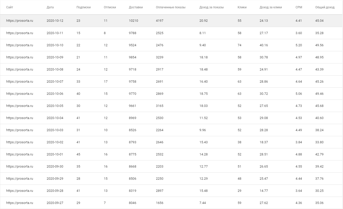 PushProfit - сейчас в среднем 30-50 рублей в день. База из 2314 активных подписчиков.