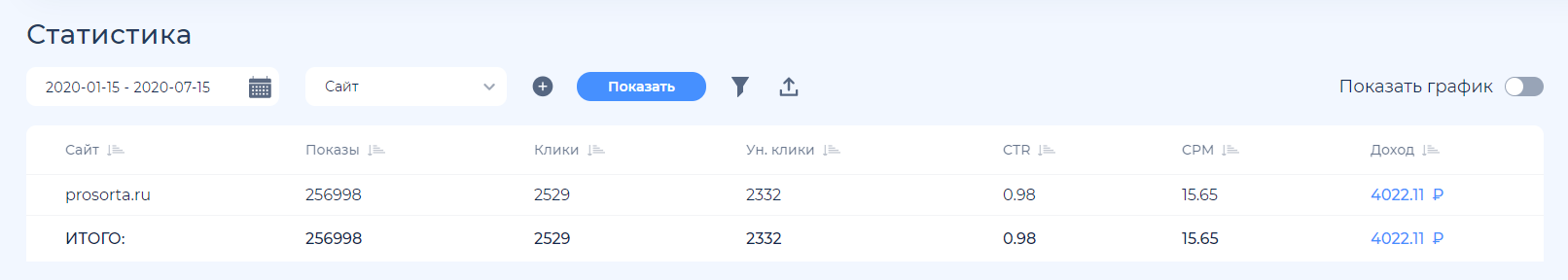 До середины июля в дополнение к РСЯ стояли тизеры ads.bid. Доход за пол года ~ 4000 р.