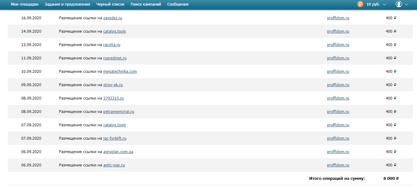 ГГЛ 8000р. (При завышеной цене и трасте 9, в этом месяце сайт получил траст 10, заработок будет больше)