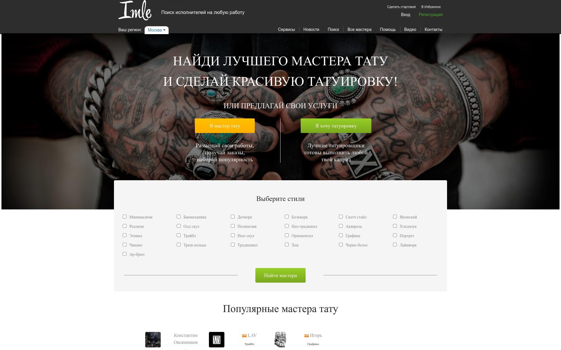 Проект IMLE.RU - является масштабной площадкой для поиска тату мастеров и салонов по всей России.