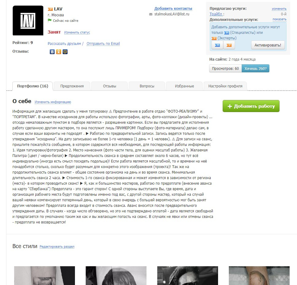 На сайте вы можете выбрать город, просмотреть работы, написать сообщение и оценить рейтинг мастера или салона тату.