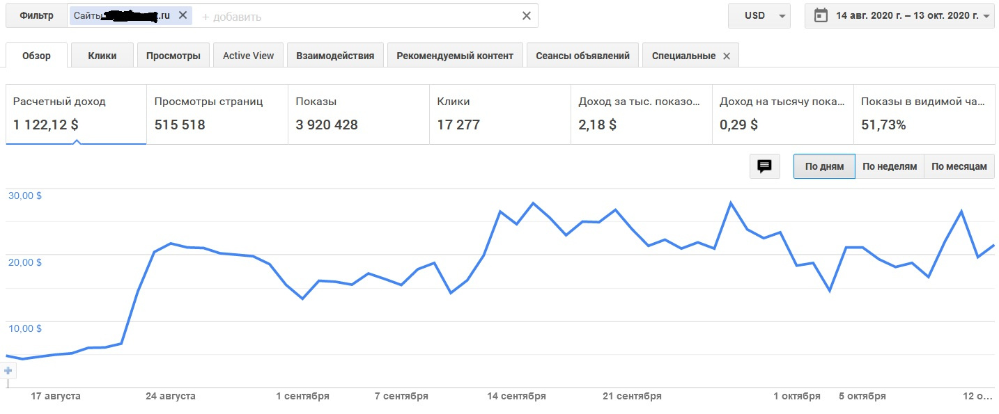 Весь доход идет из РСЯ, Адсенса и Пушпрофит