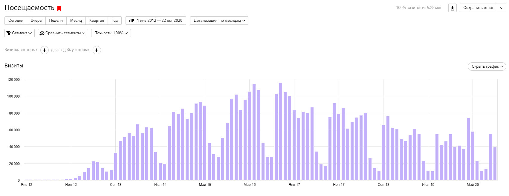Дополнительная информация по трафику:Посещаемость проседает летом и восстанавливается во время учебного года.