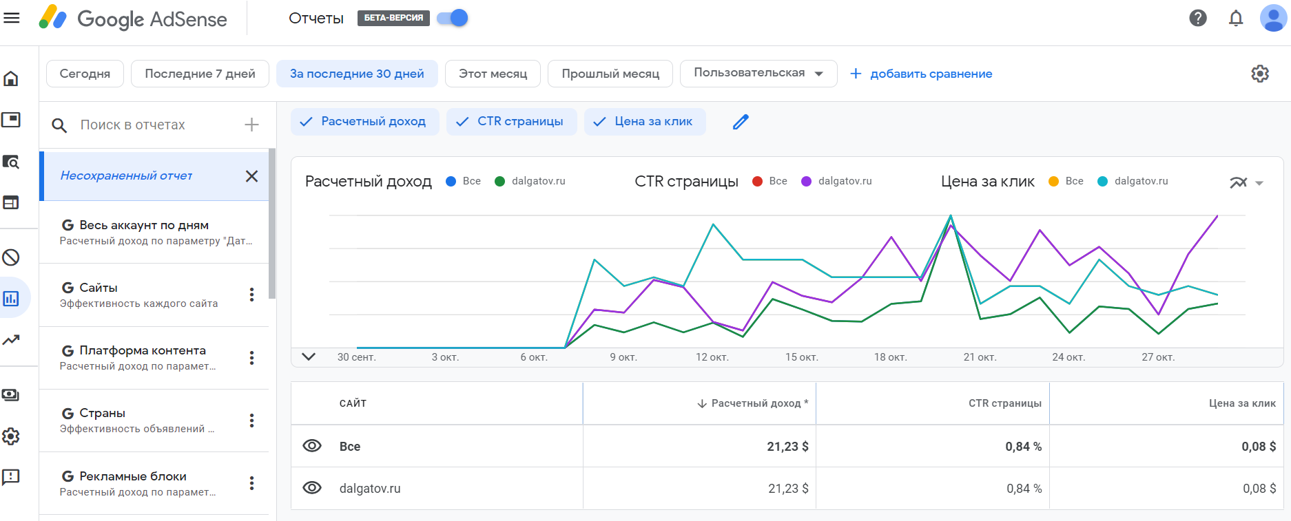 адсенс = 21,23$ = 1655Р (по курсу 78р)