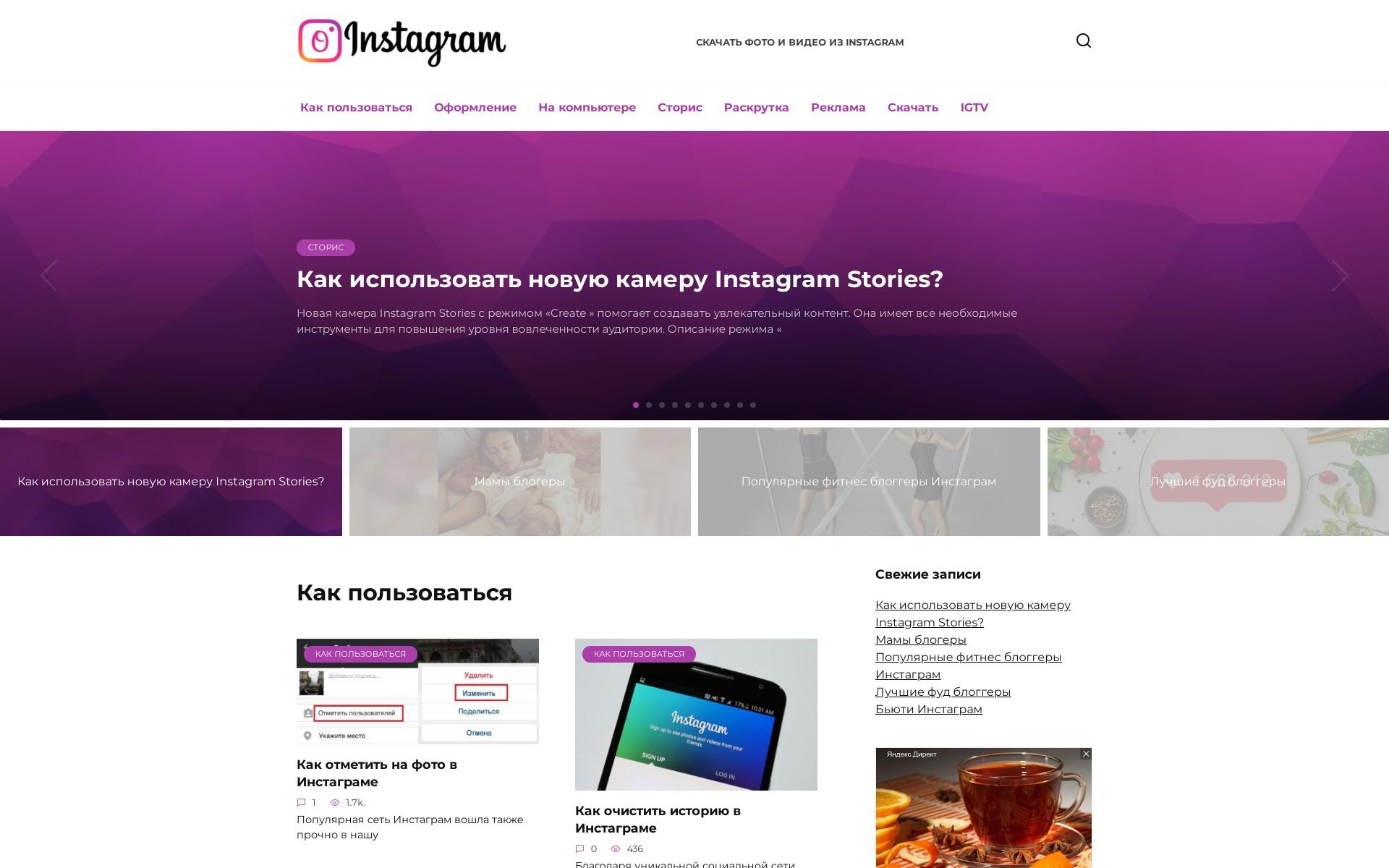 Сайт о инстаграм ТИЦ 250 более 1000 уникальных в сутки