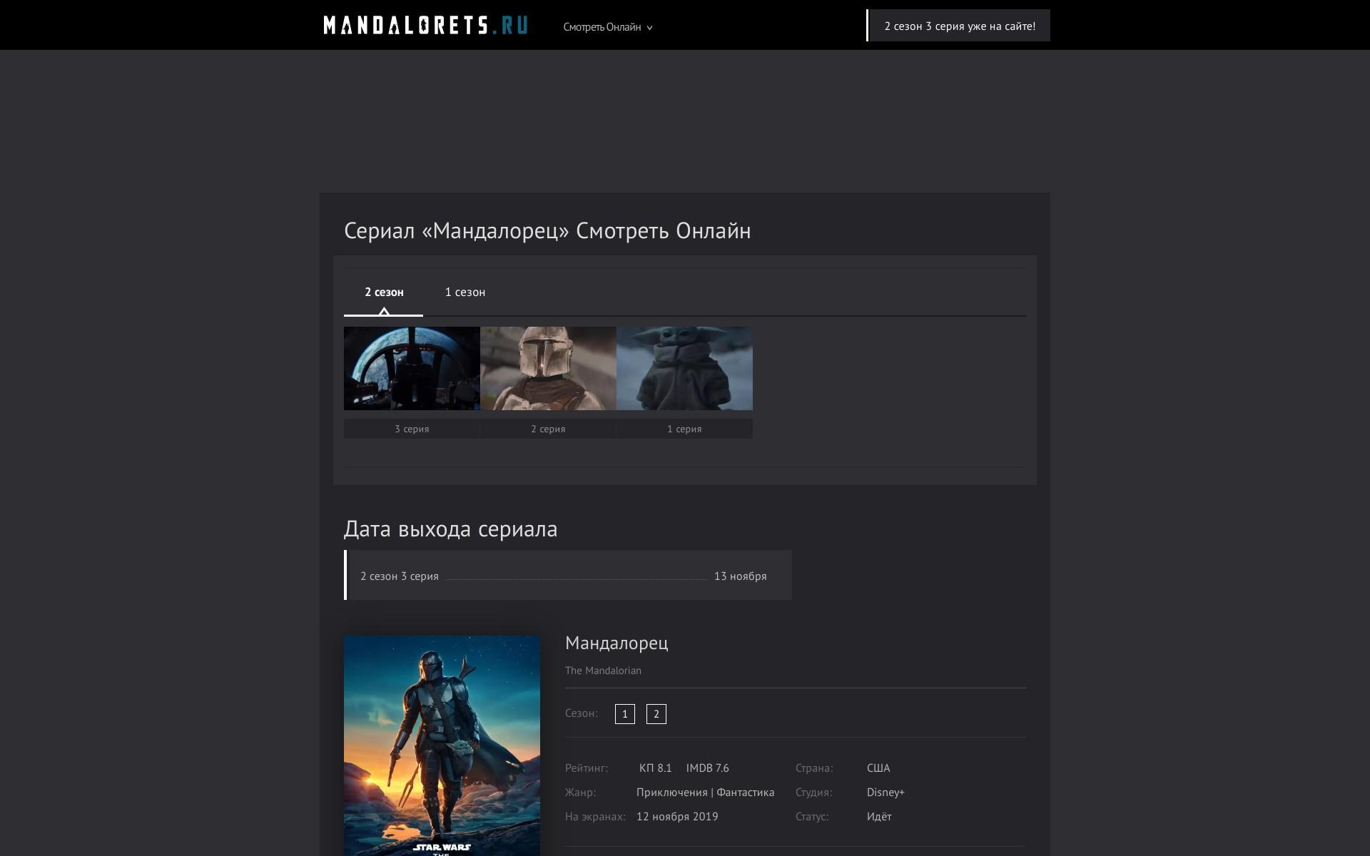 Сайт по сериалу мандалорец