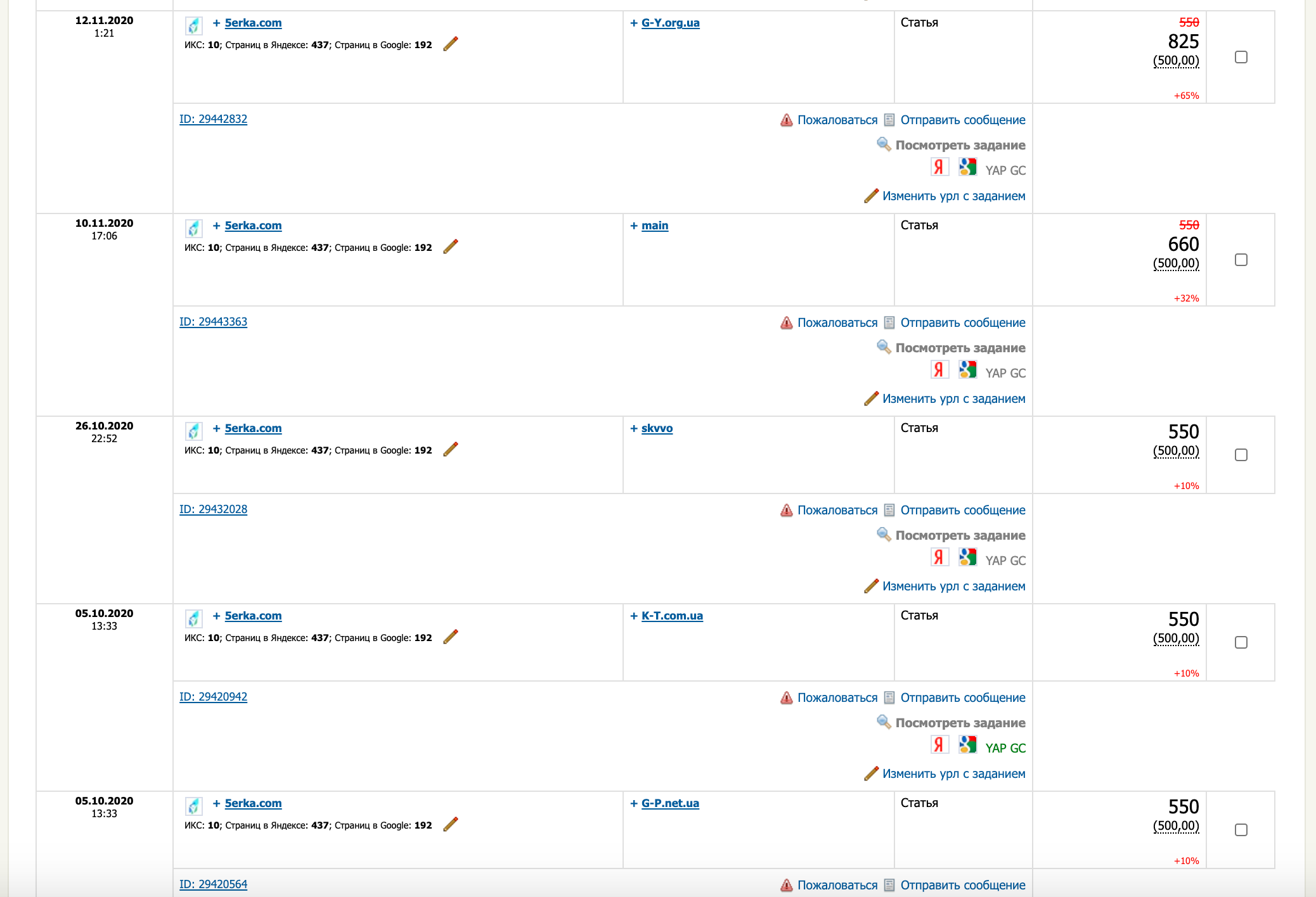 Стабильные и регулярные заказы в ссылочных биржах. В Gogetlinks сайт меньше месяца - уже есть 2 заказа.