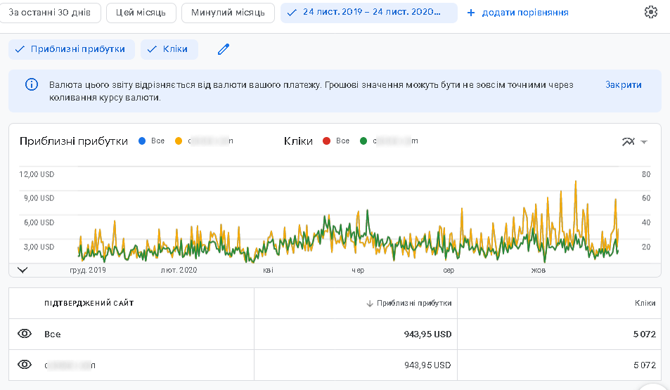Все время монетезировался только Ansense. При подключении партнерских программ доход можно существенно увеличить и окупить сайт гораздо быстрее!