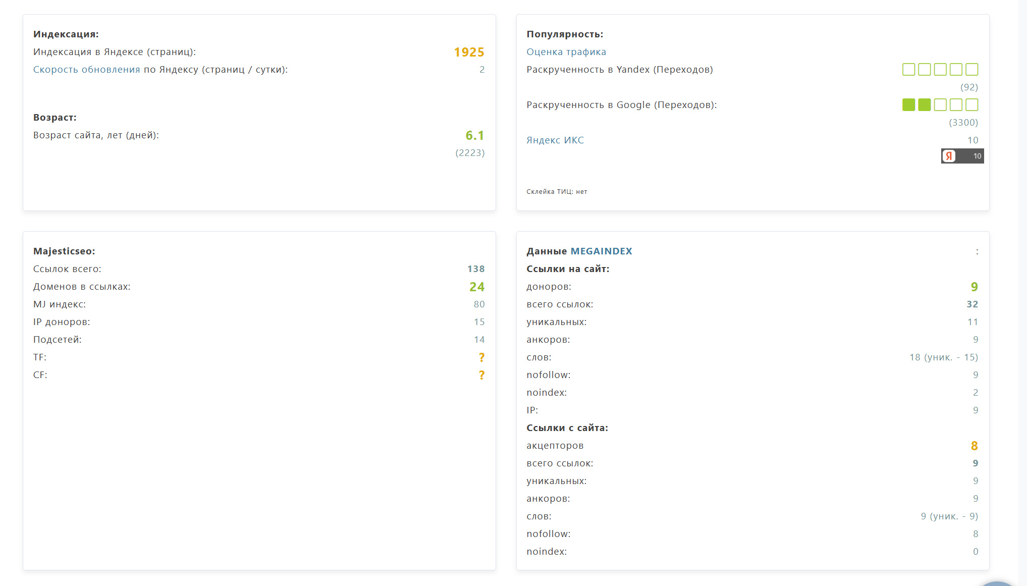 | Страниц в Google | Нет данных |