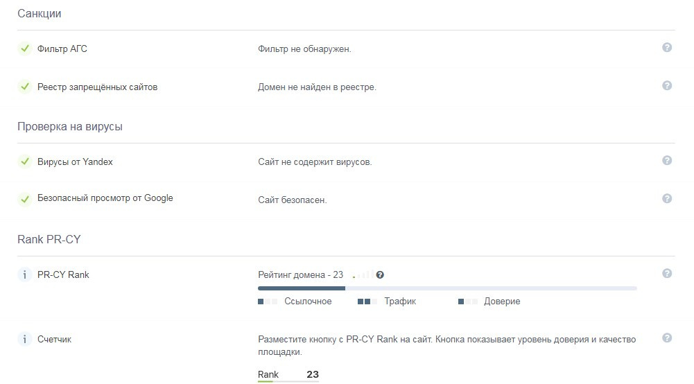 Санкции поисковых систем:Нет