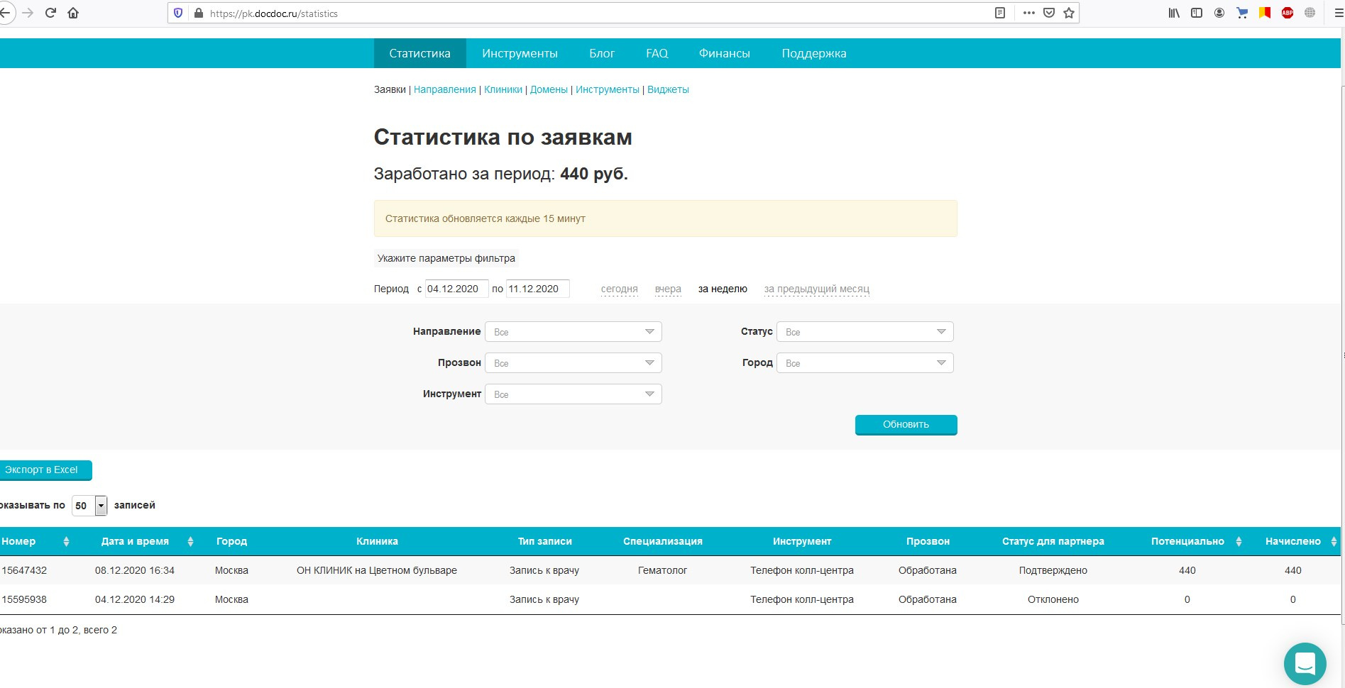 Ловит по 2 заявки в месяц