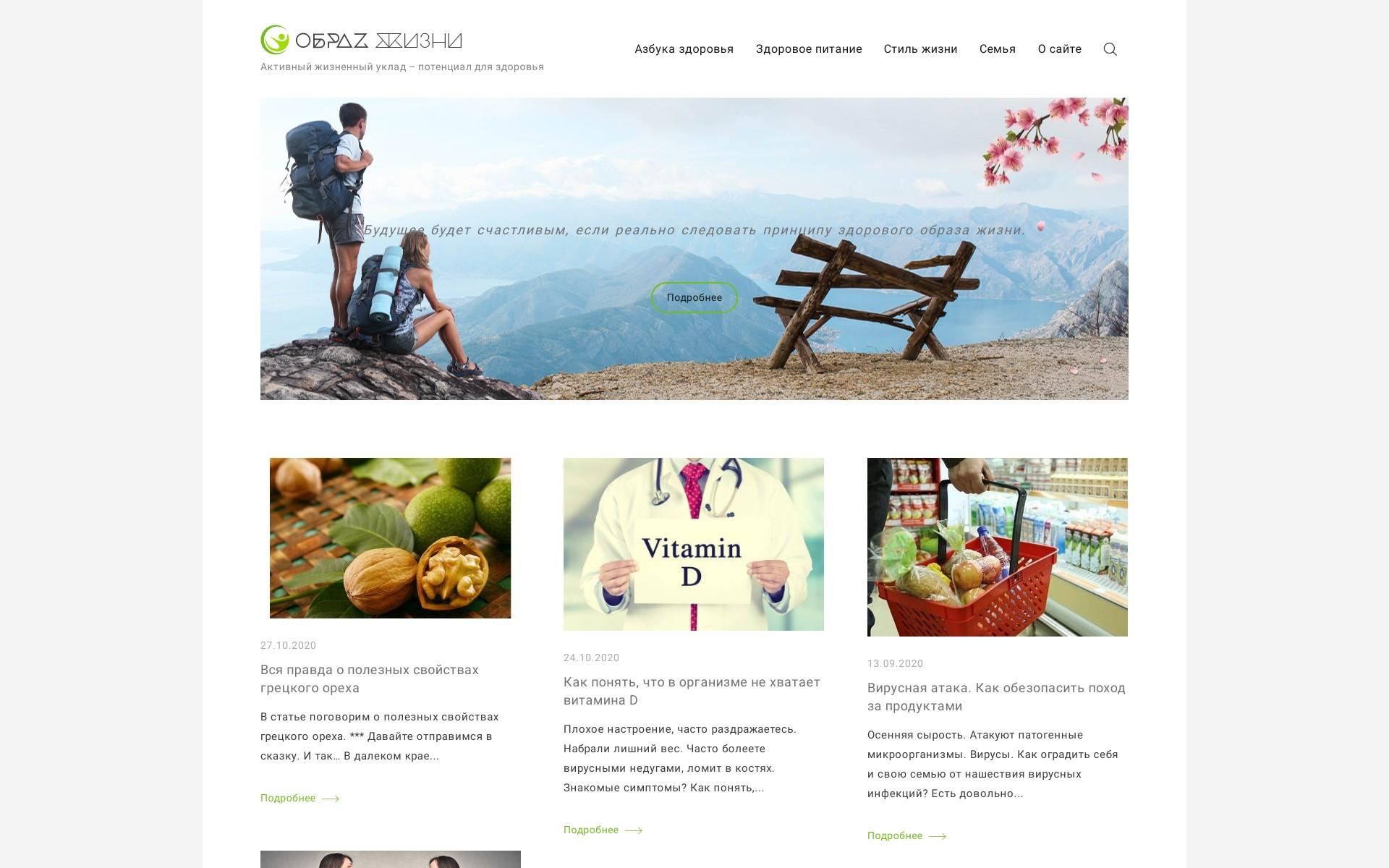 На сайте полезные материалы по рубрикам: «азбука здоровья», «здоровое питание», «стиль жизни», «семья».