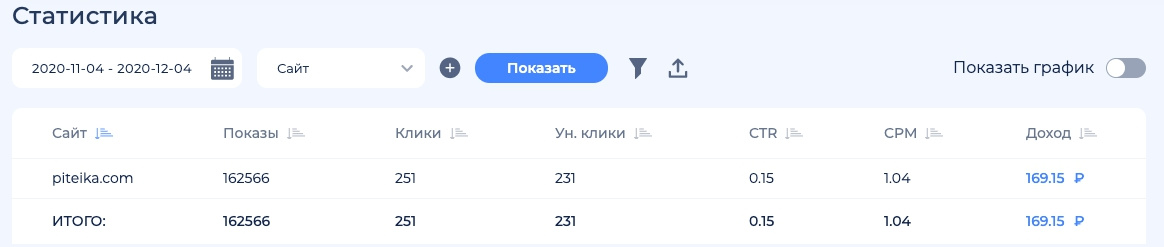 Доход подгружен с РСЯ средний, в описании указан за последний месяц, поэтому цифры отличаются.