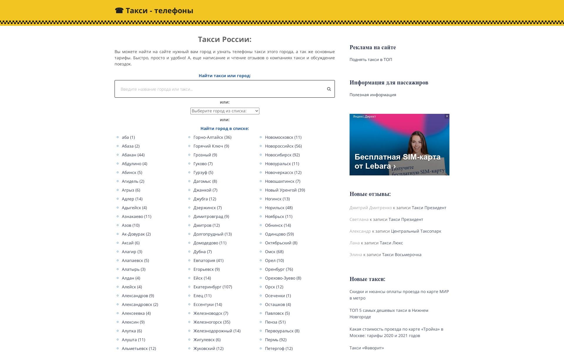 Сайт каталог номеров телефонов такси, полностью пассивный доход так как статьи писать не нужно, можно добавлять вручную или спарсить новые номера такси, что даст существенный рост трафика.