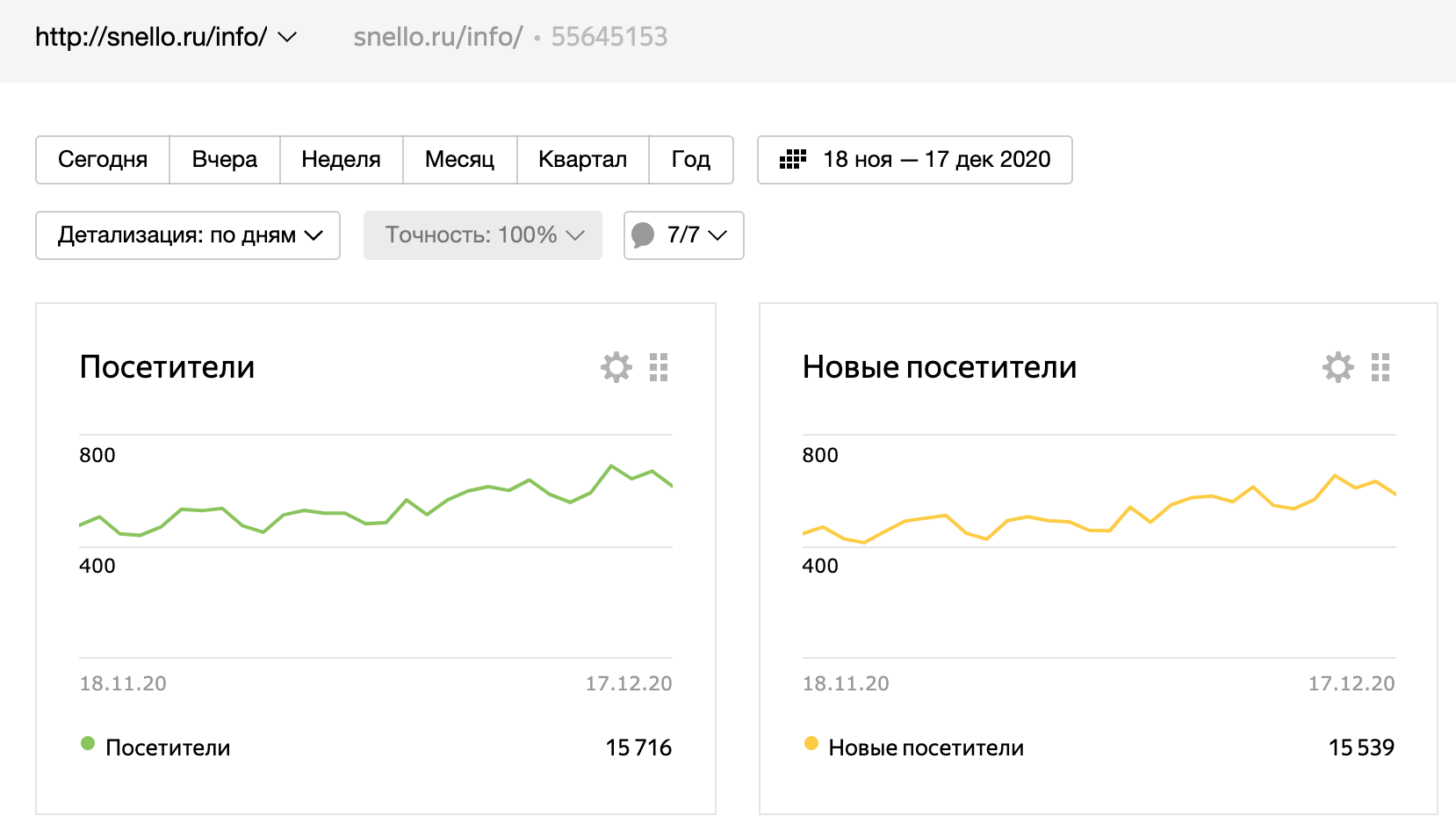 Посещаемость сайта за последний месяц: