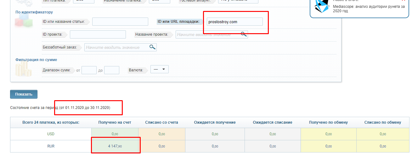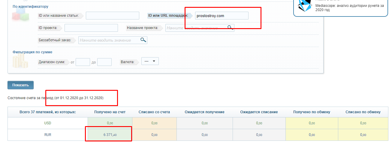 Сайт хорошо зарабатывает на ссылках. Также идет доход в РСЯ.