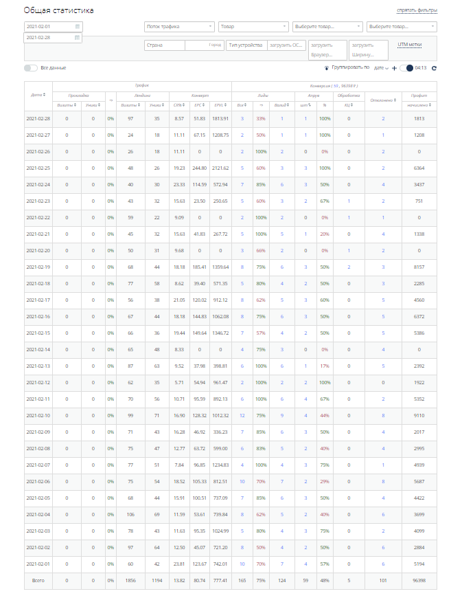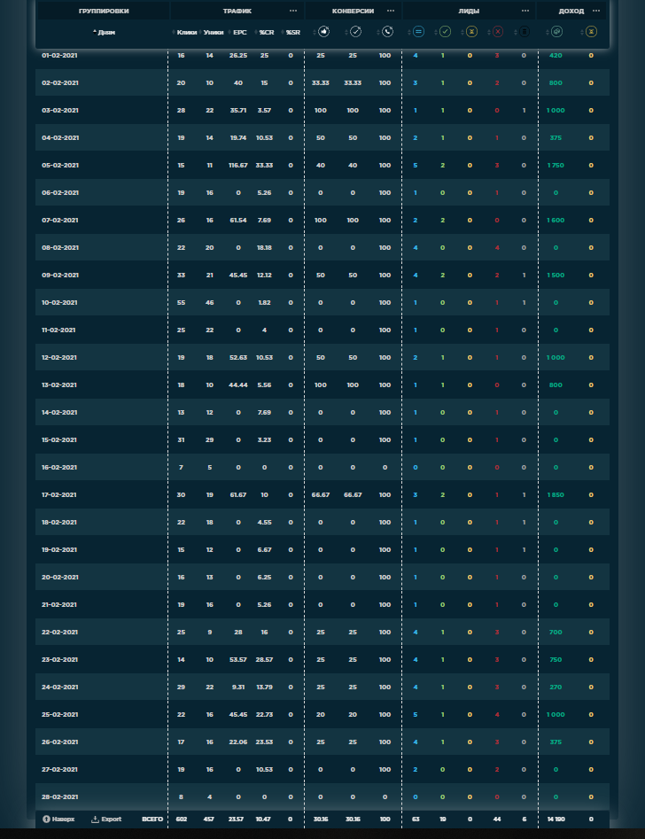► Положительная динамика. Стабильный рост трафика/дохода.