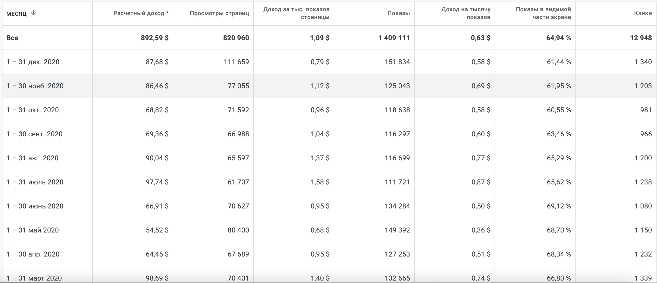 Доход только от Яндекс РСЯ и Гугл Адсенс