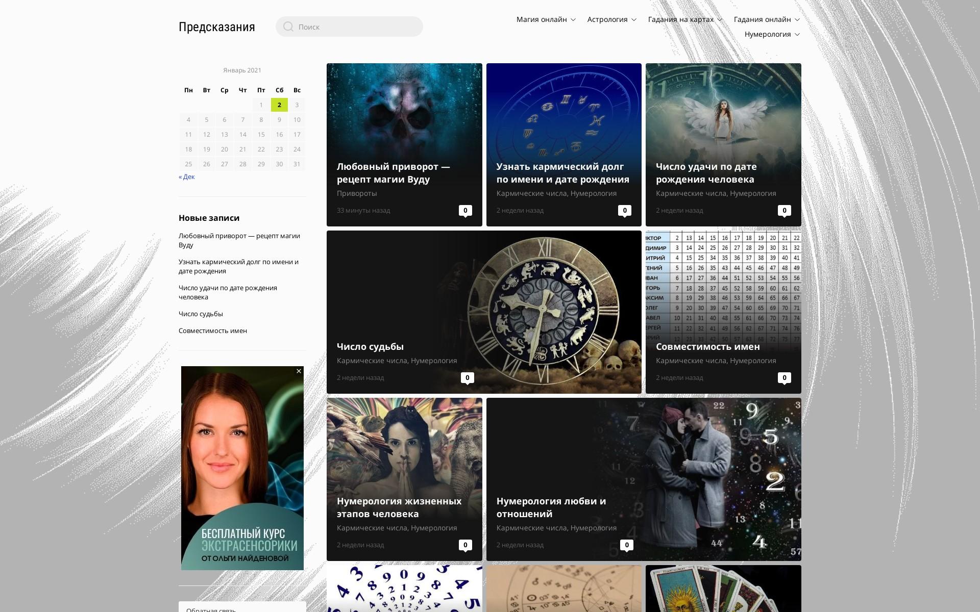 Продам сайт самой популярной тематики - Предсказания, магия, нумерология, гадания-онлайн.