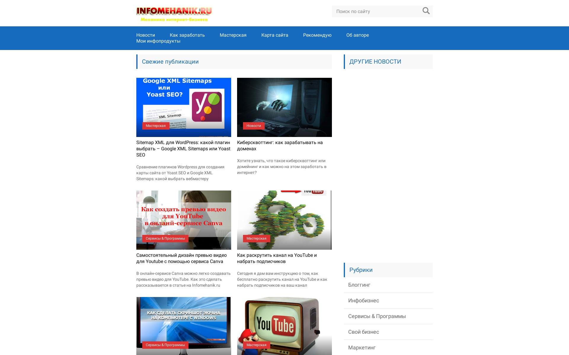 Весь контент написан собственноручно и в свое время был очень популярен среди интернет-новичков.
