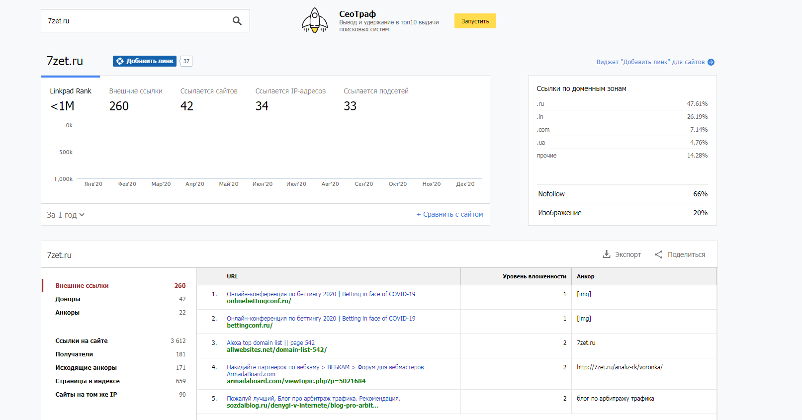 У сайта хорошая ссылочная масса (см. скриншот анализа по сервису Linkpad)
