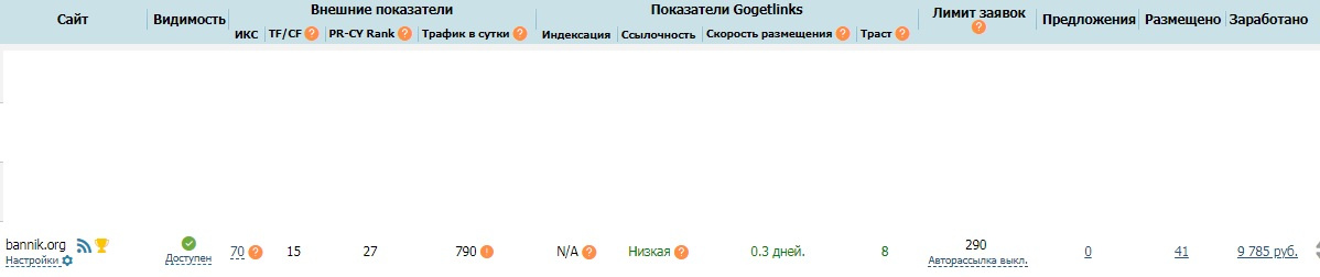 Приносит стабильный доход - около 4500-5000 руб/мес в ГГЛ и имеет неплохие показатели для заработка траст 9, ИКС 70, TF/CF15, ссылочность низкая 0%.