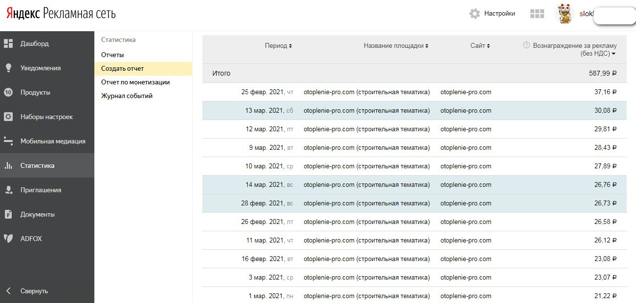 Скрины дохода с РСЯ за месяц - добавил к лоту.