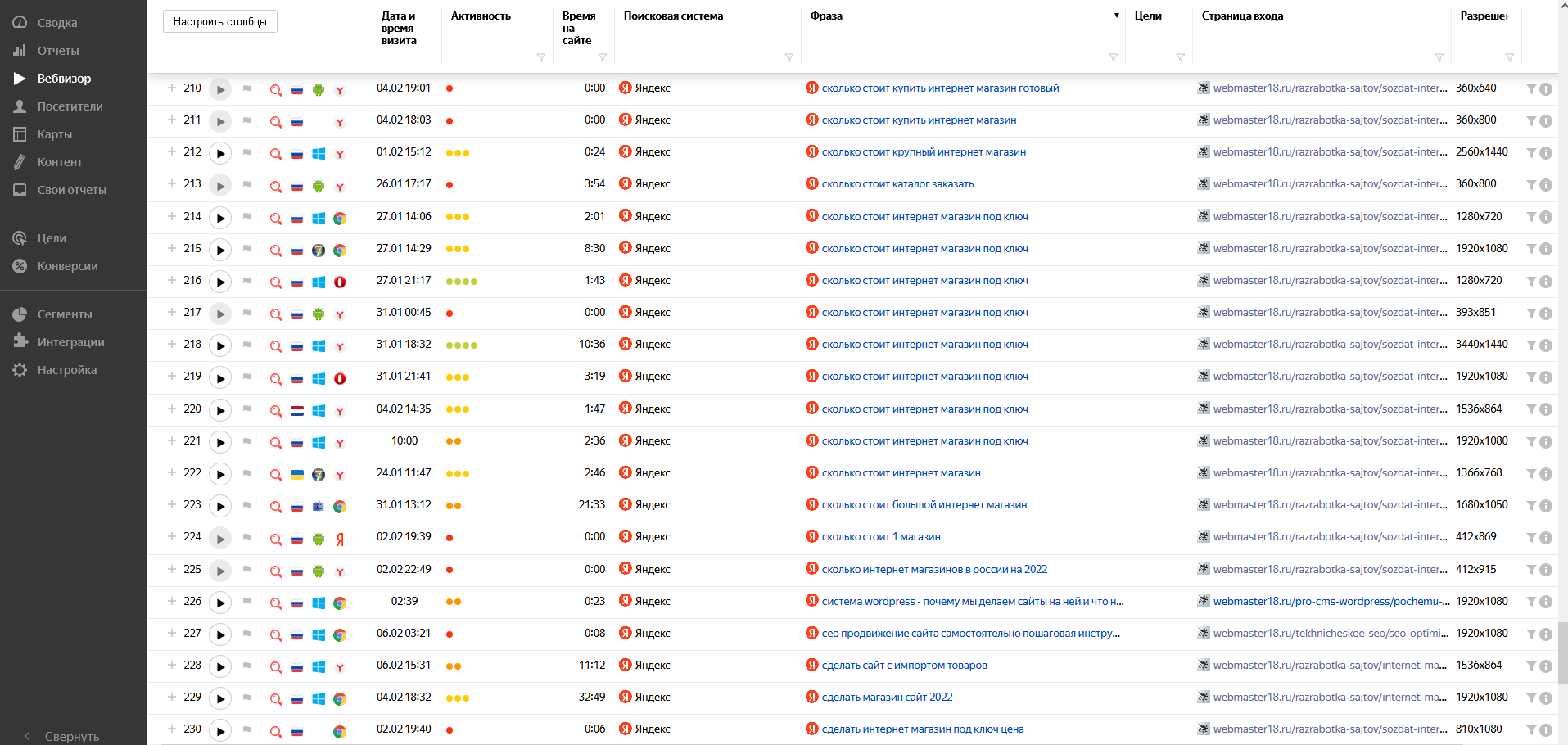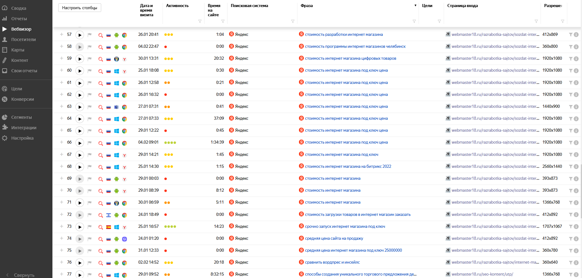 Позиции в поиске Яндекс: