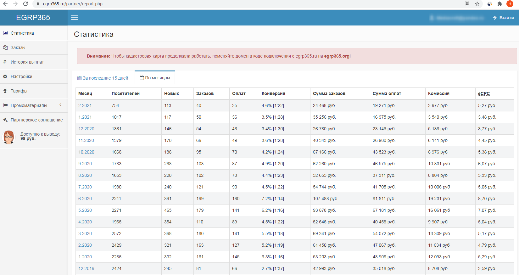 Продажа выписок из ЕГРН партнерка egrp365 - 4500р.