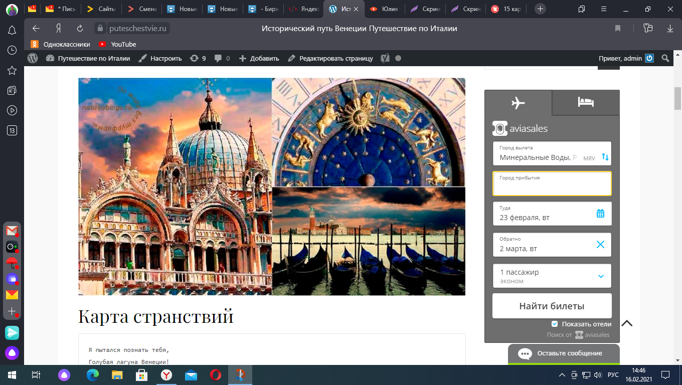 сайт Исторический путь Венеции путешествие по Италии под ключен соц сетям три партнерки travel aviasales level travel есть подключения тур фирмам