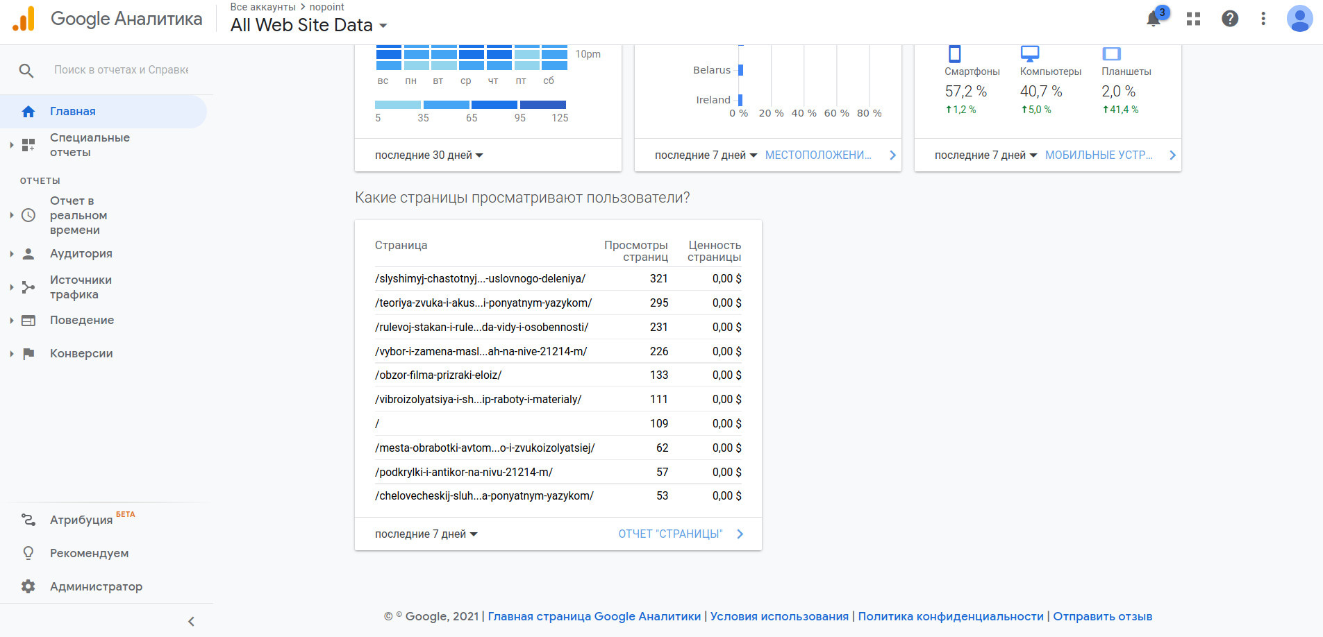 Дополнительная информация по трафику:Весь трафик естественный, люди, которые приходят сами из поиска. Никаких особых действий по продвижению не предпренималось, только качественные статьи и немного ключевых запросов по wordstat (делалось не с самого начала)