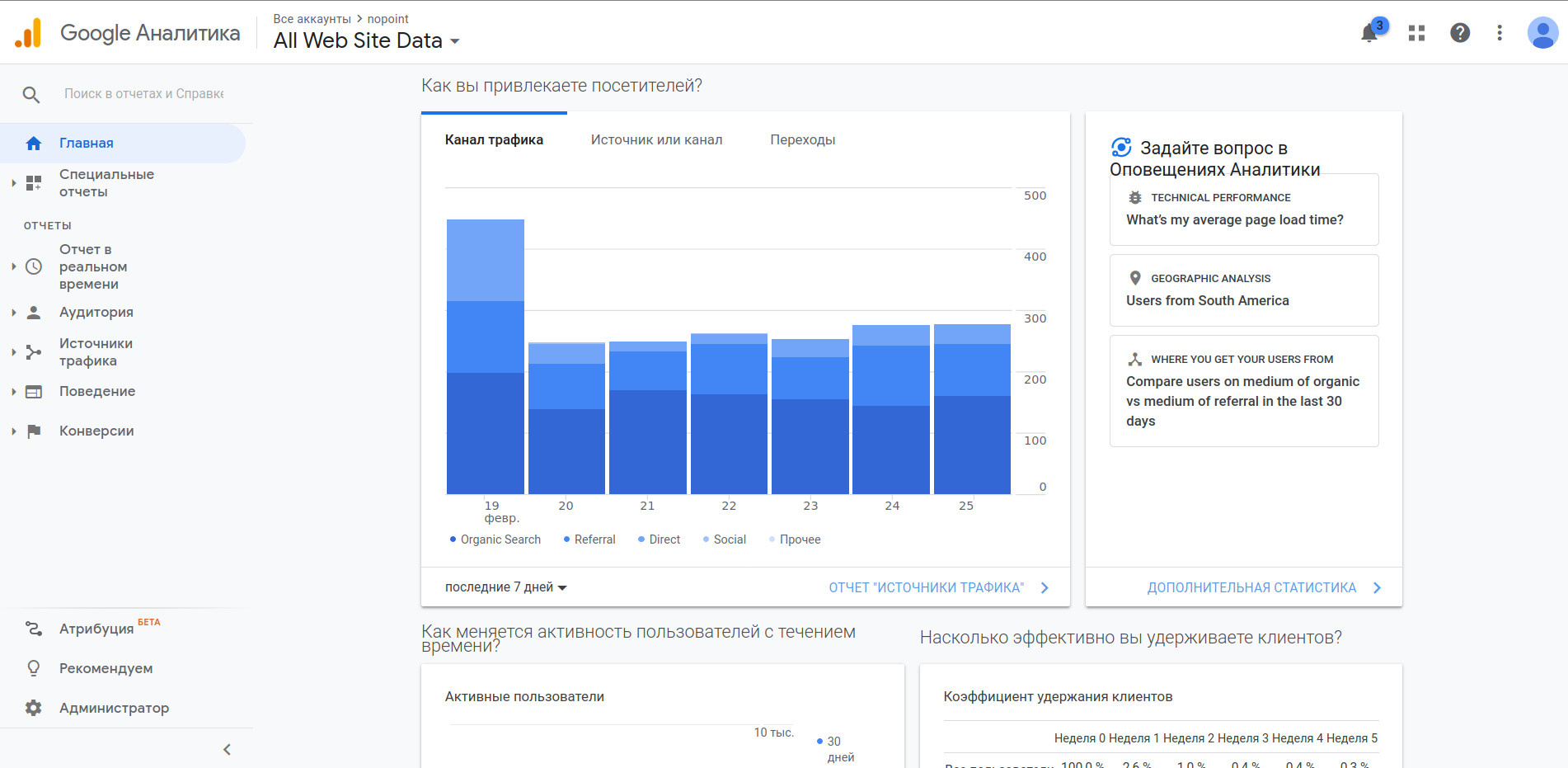 Источники трафика: