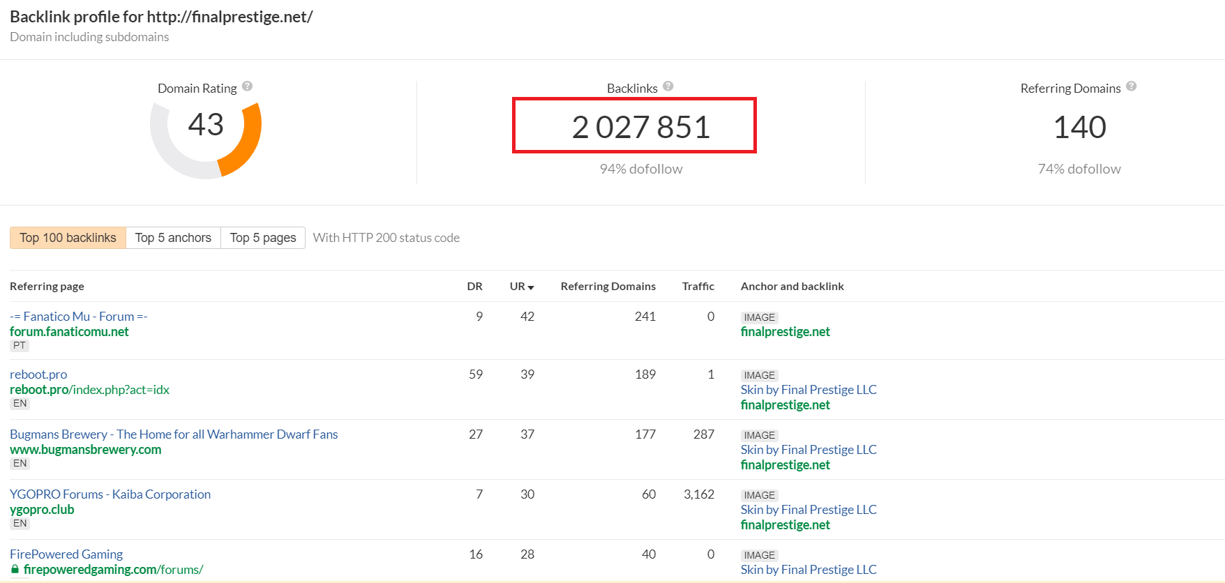 Но факт остается фактом - на домен ссылаются более 2 млн раз и DR (domain rating) = 43. Скрин приложил.