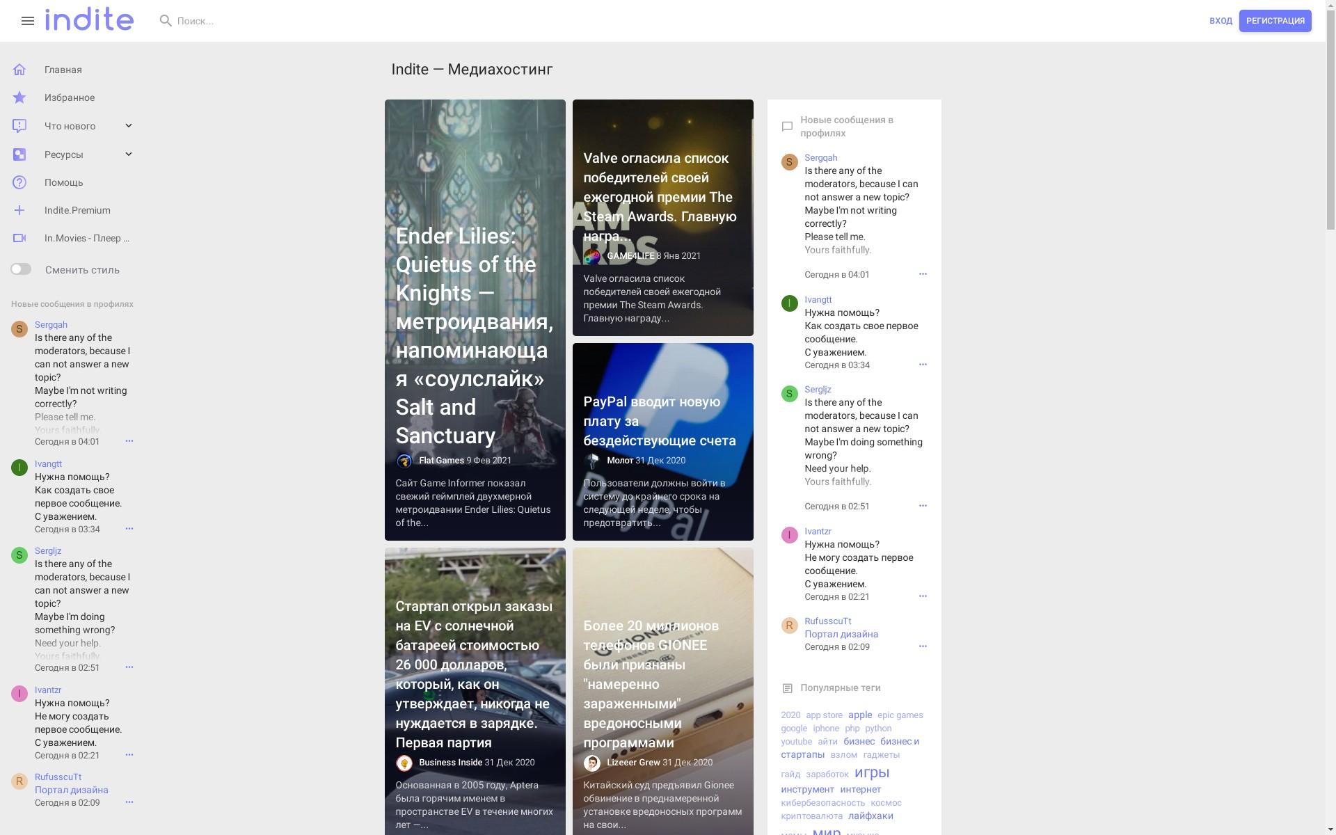 Индайт. Точной идеи что это будет не было, так как сайт создавался скорее для души и двигался на чистом энтузиазме. Это что-то вроде хостинга медиаконтента, или блог-платформы, где любой пользователь после регистрации может начать создавать свои публикации, писать всё что душе угодно, рассказывать истории, писать обзоры, обмениваться ссылками и многое другое. Сервис создавался и двигался одним человеком без какого либо финансирования. Отличительных знаний в SEO не было, собственно, как и времени во всем этом разбираться. Куча прочих мелочей, с которыми вы сами можете ознакомиться.