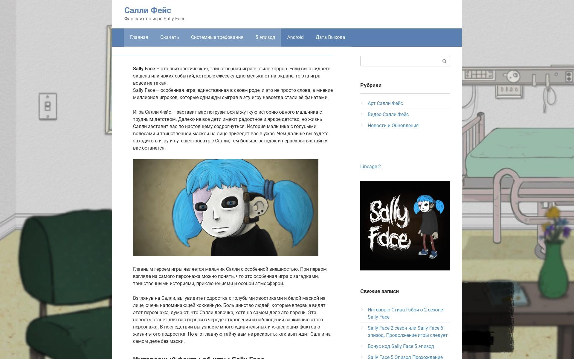 Сайт посвящен Sally Face – игре в стиле хоррор. Имеет неплохие показатели для дальнейшего развития.