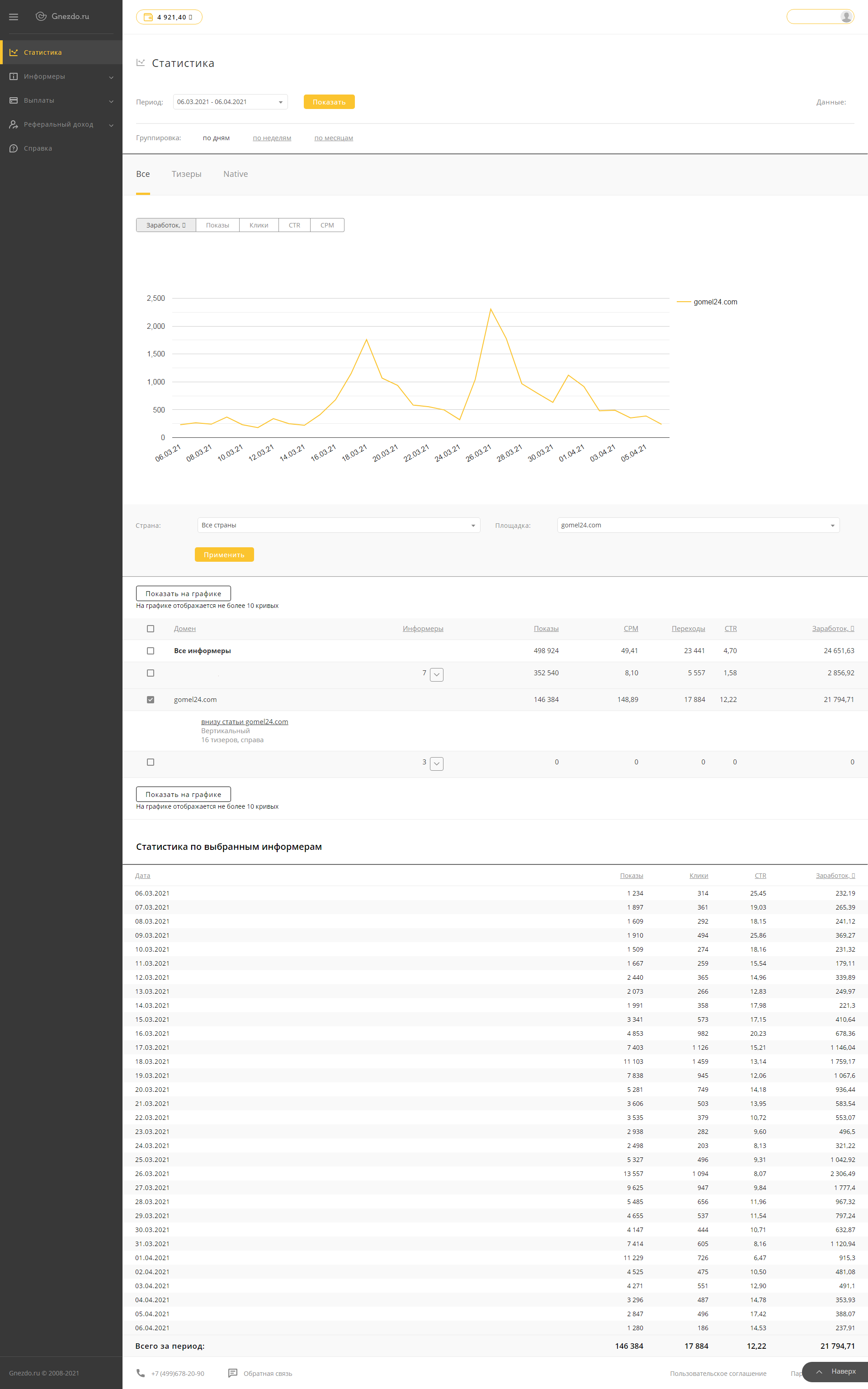 Новостной сайт с хорошим доходом. Трафик в основном поисковый. Сайт очень хорошо индексируется. ИКС = 150.