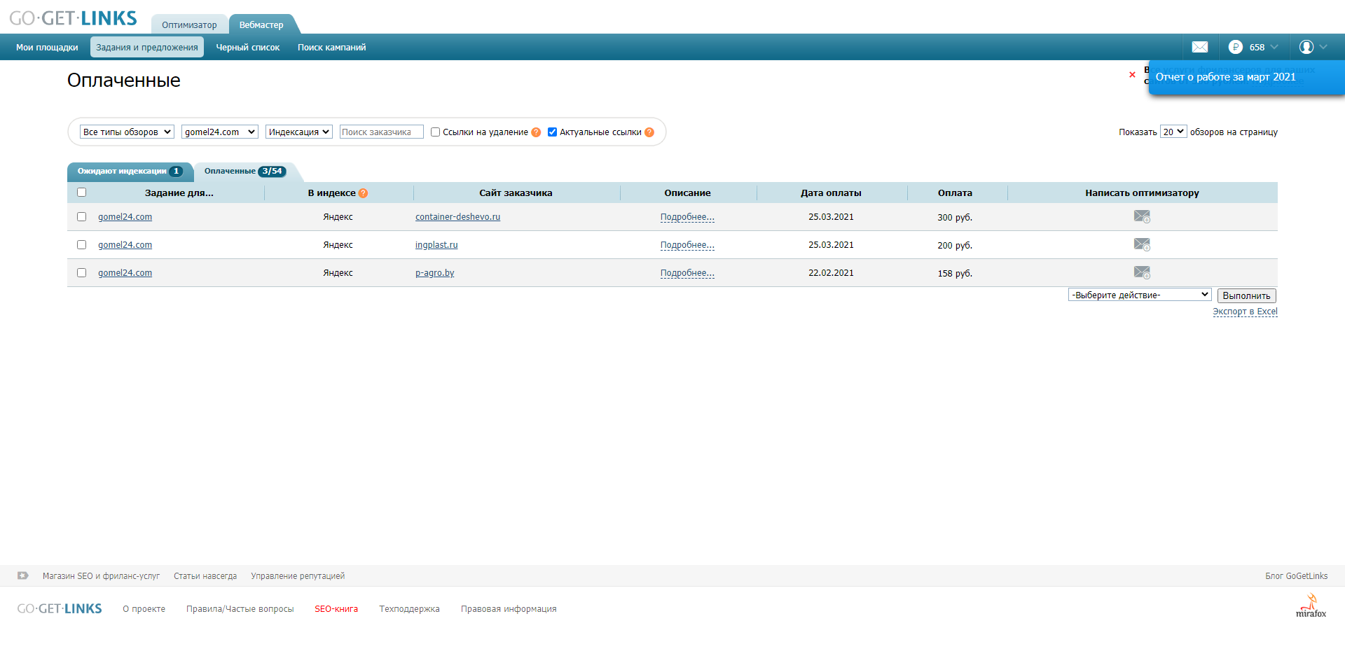 Сайт принят в биржу MiraLinks и ГГЛ, ротапост, pr.sape.ru.