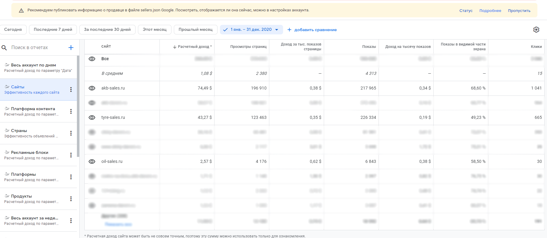 За 2020 год особо не занимаясь сайтами заработал порядка 75 т.р. (стата во вложении)