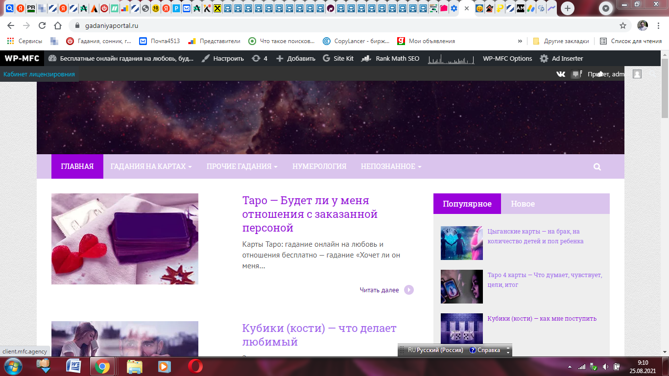 Дополнительная информация:Контент полностью уникальный, собственные статьи и картинки, 82 гадания. Некоторые гадания полностью уникальные,применены гадальные скрипты,