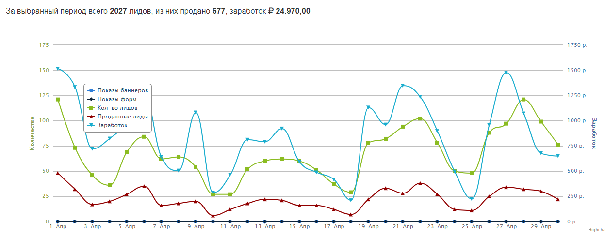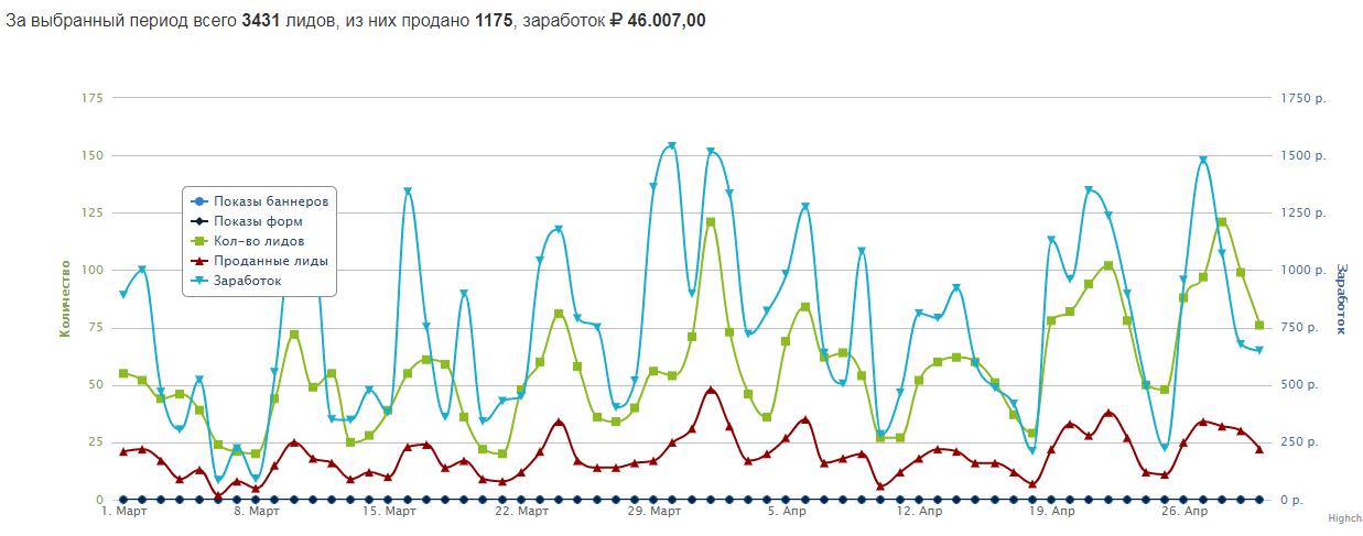 leadpush за апрель вышло 24 000 руб., а за март-апрель 46 000 руб.