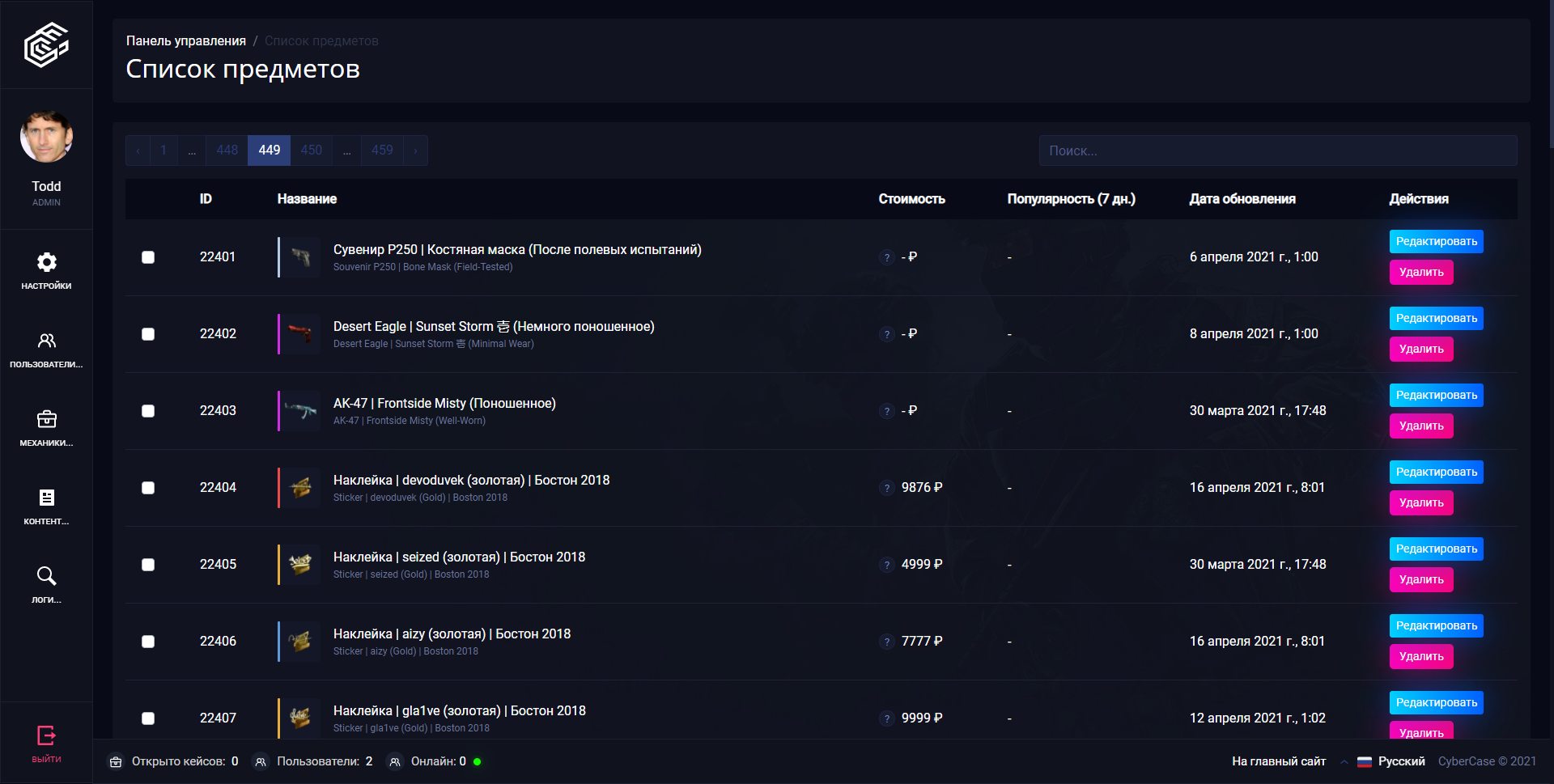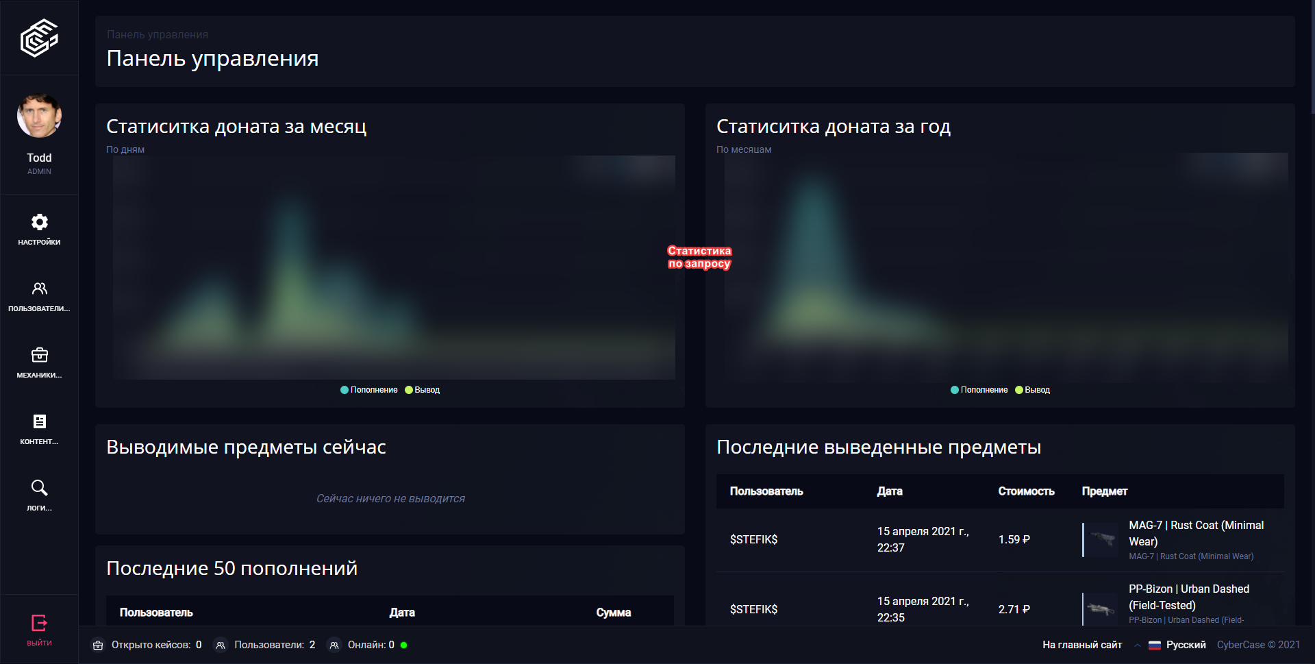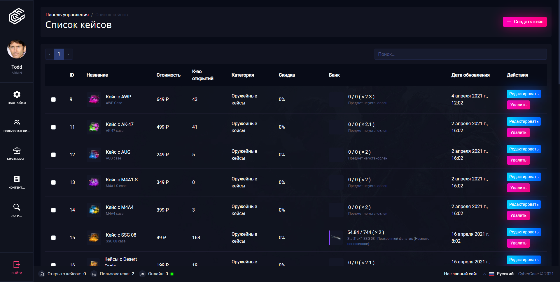 Готовый сайт по открытию кейсов и контрактов CS:GO под ключ. Способен приносить высокий доход после проведения успешной рекламной кампании (например, при привлечении ютуберов/стримеров).