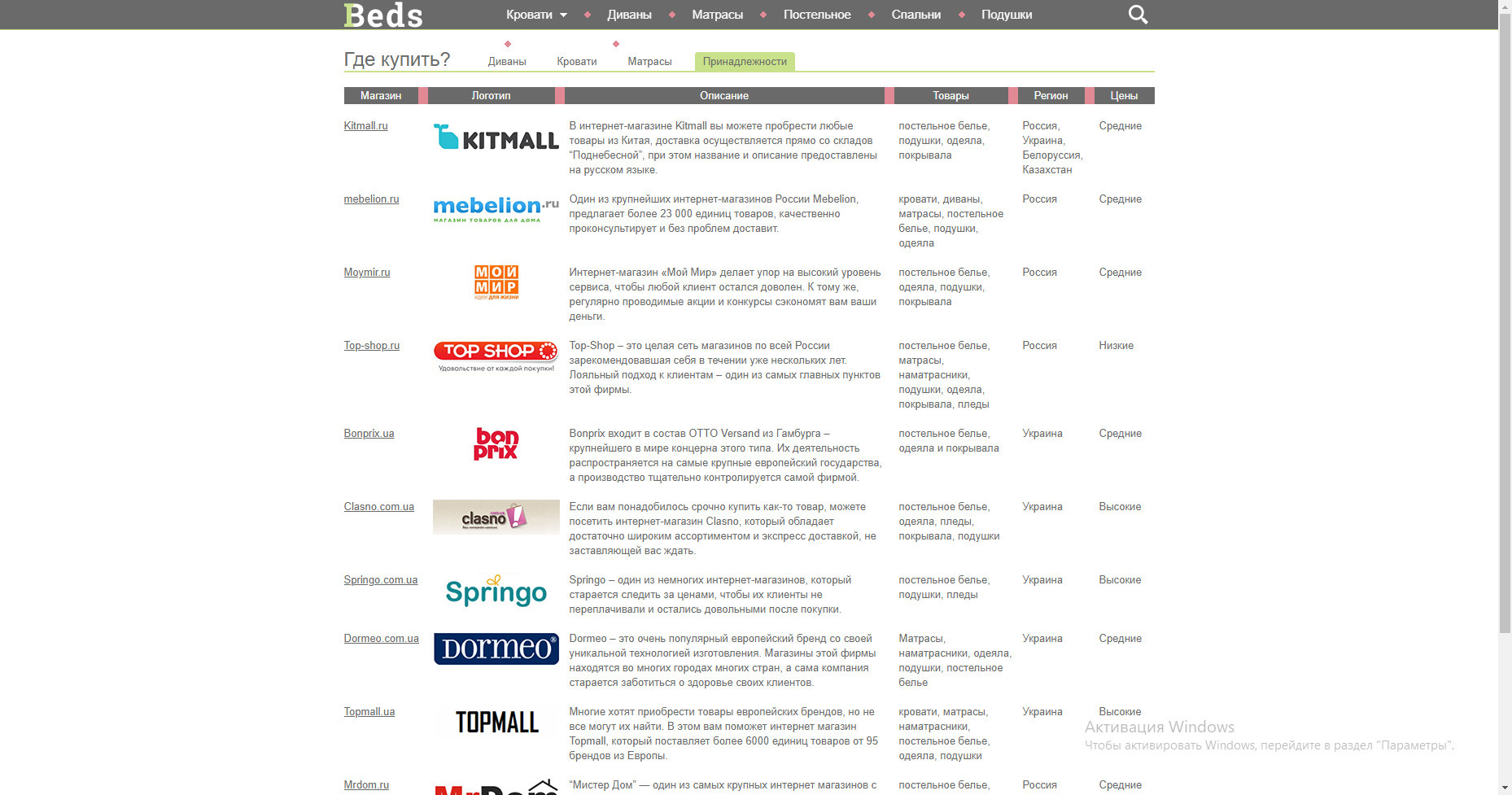 Информационный сайт для тех, кто ищет вопросы по мебельной тематике, даются рекомендации по выбору кроватей, матрасов, диванов, подушек и т.д., Есть дополнительная страница с интернет магазинами где купить. Отлично подойдет как и дополнение для раскрутки своего мебельного магазина или интернет магазина.