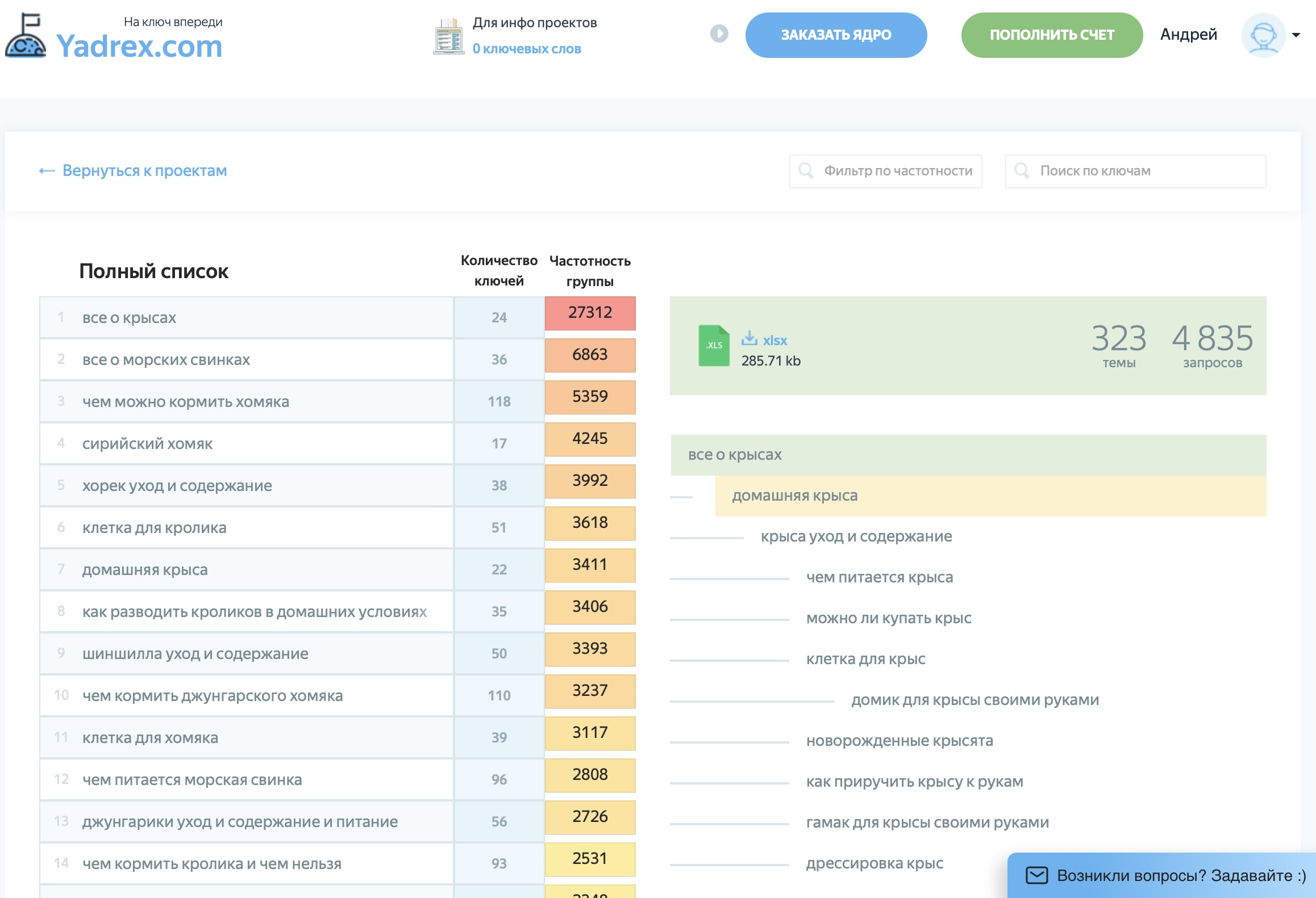 Каждая статья помимо изначальной купленной семантики от Yadrex (см скриншоты), подготовлена с помощью сервиса tzmonster.pro (см скриншоты),