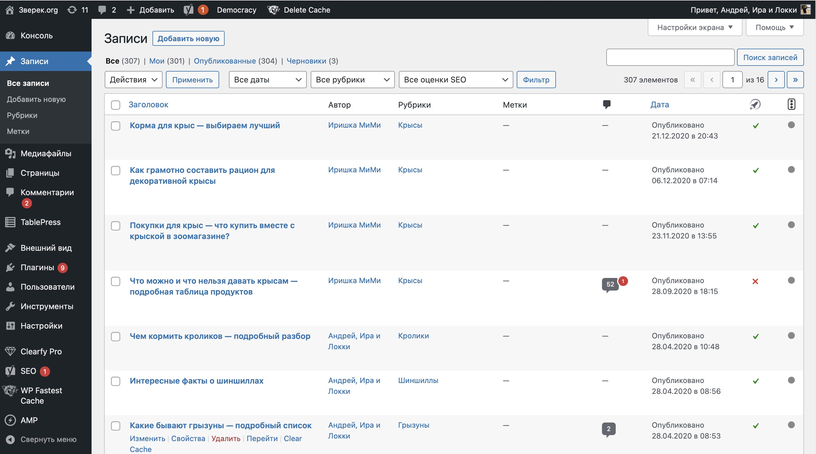 Всего на сайте 307 уникальных статей, выписанных копирайтерами биржи WorkHard,