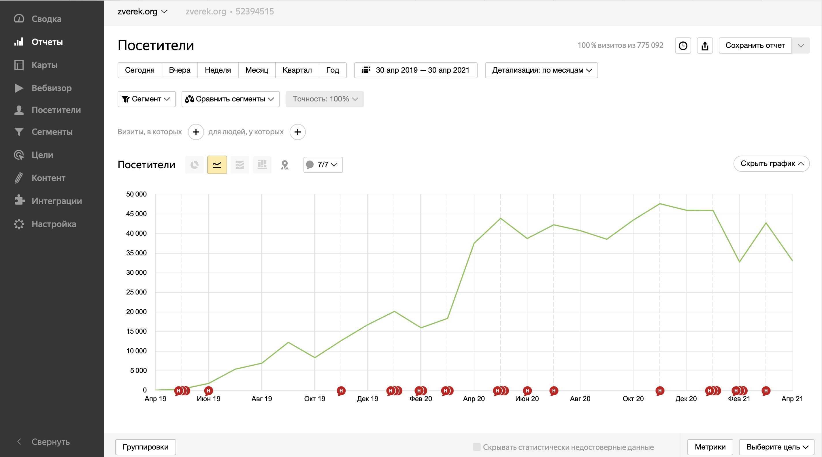 Изначально стартовали с доменом .club(см скрин метрики), но в итоге переехали на .org так красивее и аккуратнее выглядит