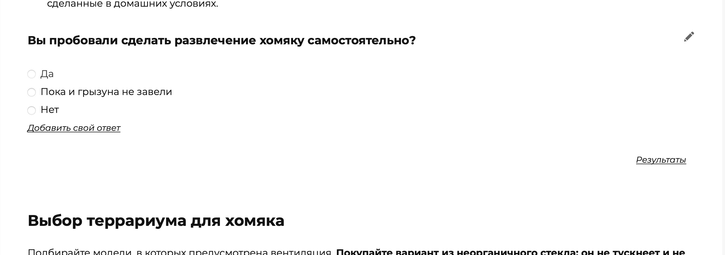 Мы сами владельцы крысок, поэтому создавали сайт с любовью, делали упор на качество текстов, хорошем и понятном оформлении, потенциальному покупателю покажу инструкции для КМ-а, редактора, копирайтеров.