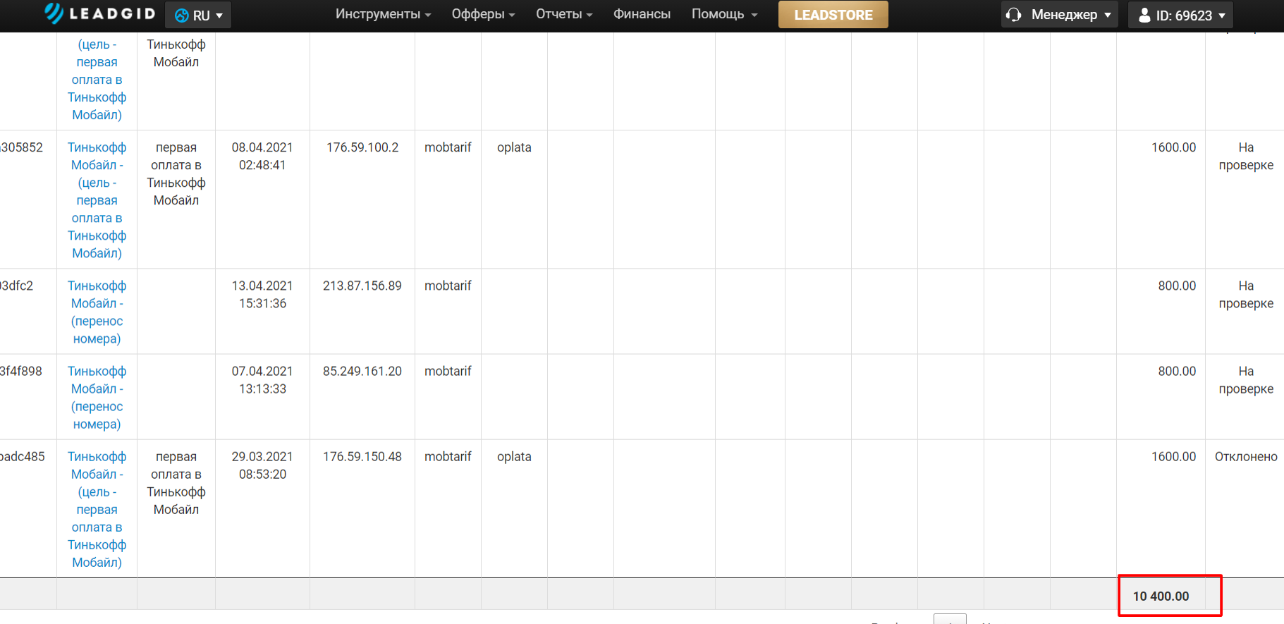 На данный момент есть два оффера: перенос номера в Тинькофф Мобайл от другого оператора (отчисление 800 рублей) и покупка симкарты в Тинькофф Мобайл (отчисление 1600 рублей).