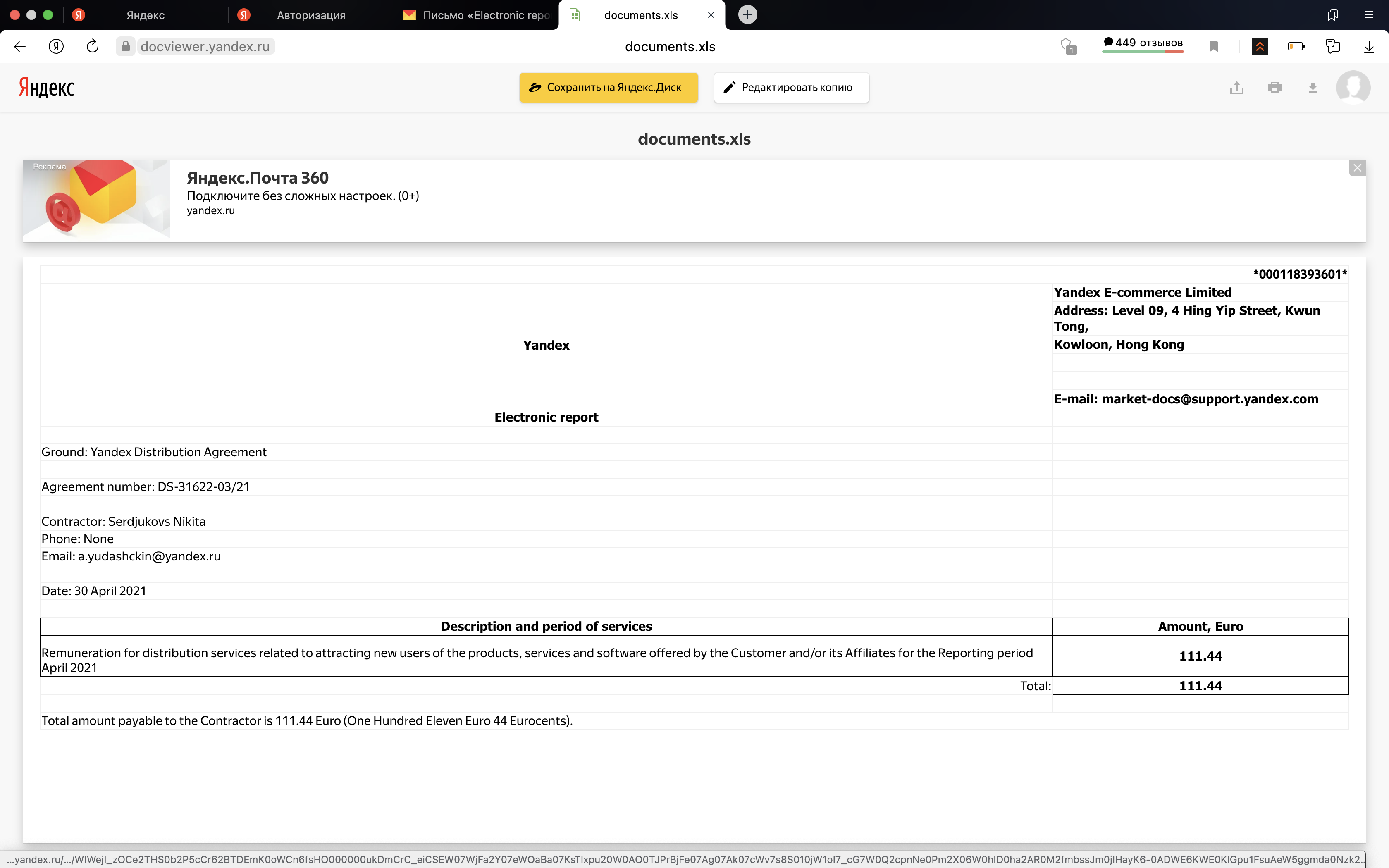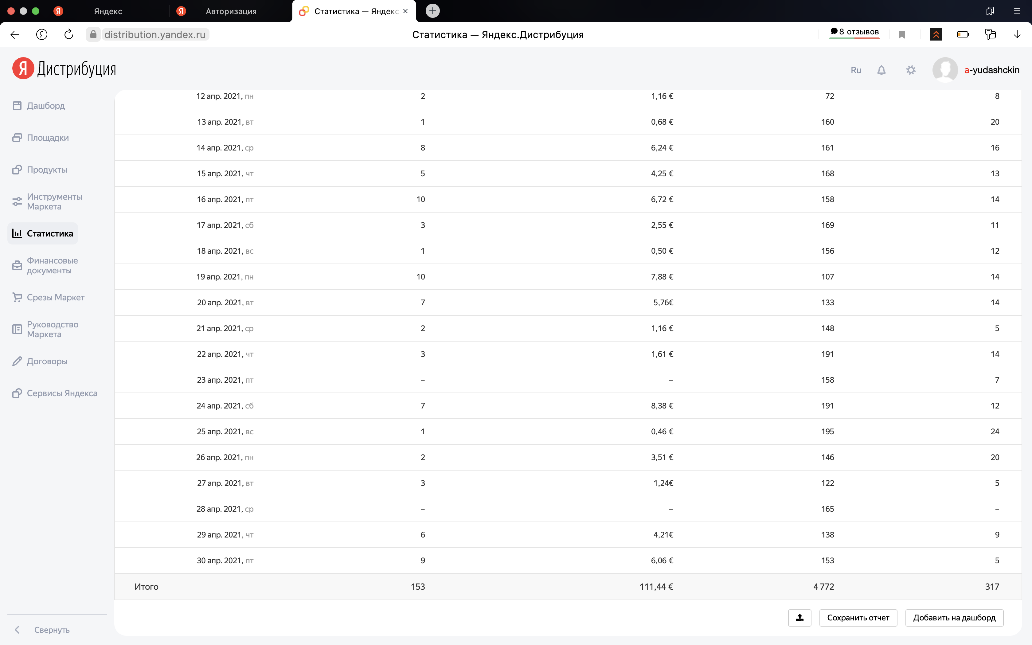 Доходы от Яндекс Дитрибуции