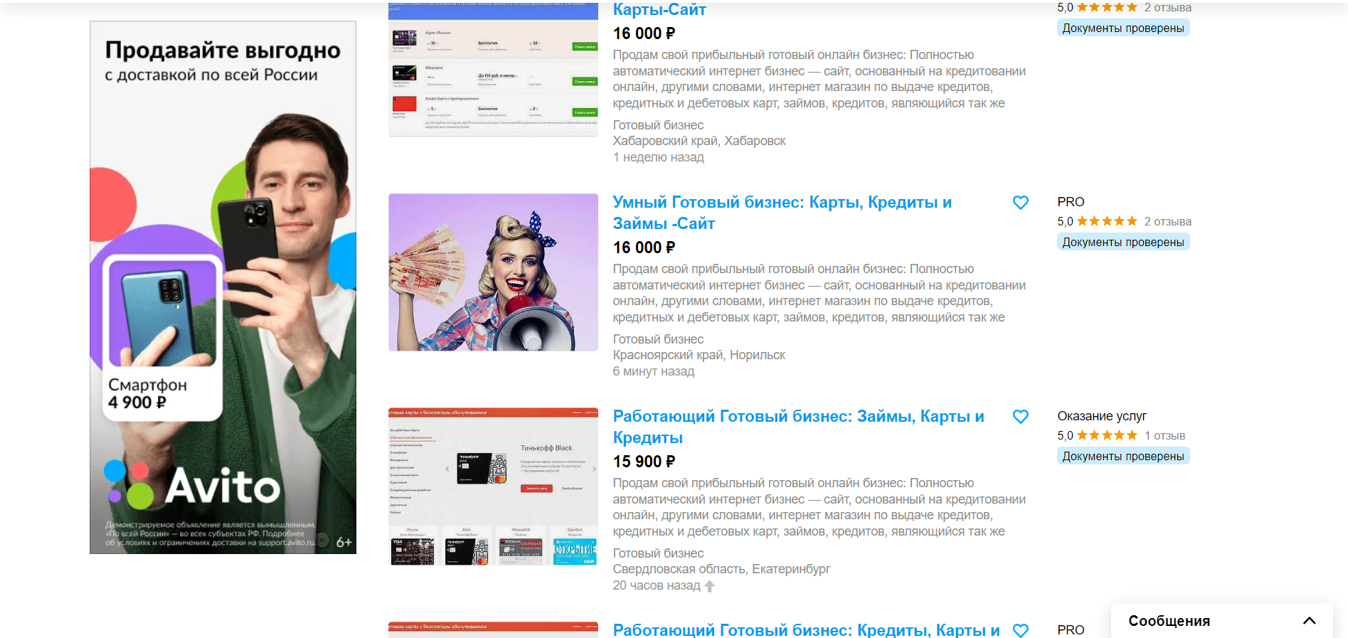 Вы размещаете уже готовые объявления на авито о продаже готового бизнеса на кредитах, займах, картах, страховании и расчетных счетах.