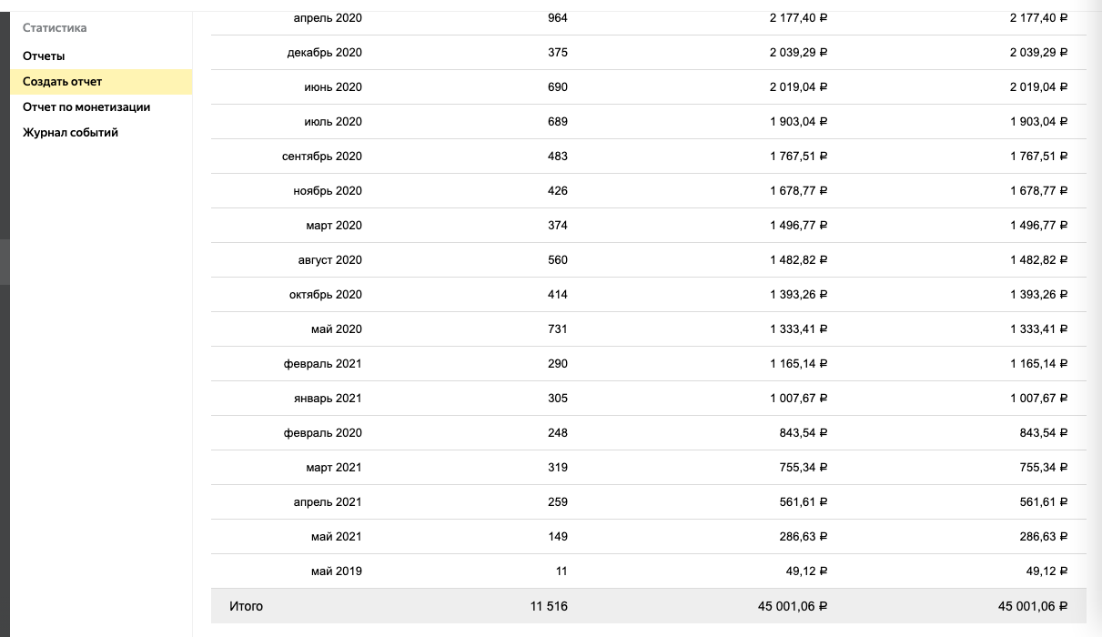 Бан в системах монетизации:Средний доход в месяц 1000 р